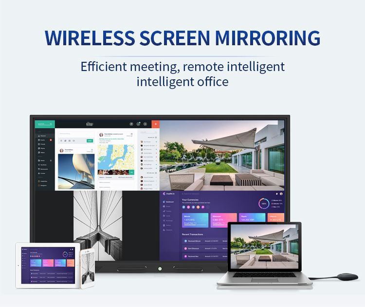 2. Mikilvægasti hluti ráðstefnuvélarinnar er skjávörpun. Við bjóðum upp á ýmsar skjávarpsstillingar til að velja úr, allt frá skjávörpubúnaði, hugbúnaði og QR kóða. Og styður skjávörpun í mörgum aðila, hvort sem það er spjaldtölva, tölva, farsími, svo lengi sem þú þarft, geturðu varpað efninu á ráðstefnuvélina án tafar.